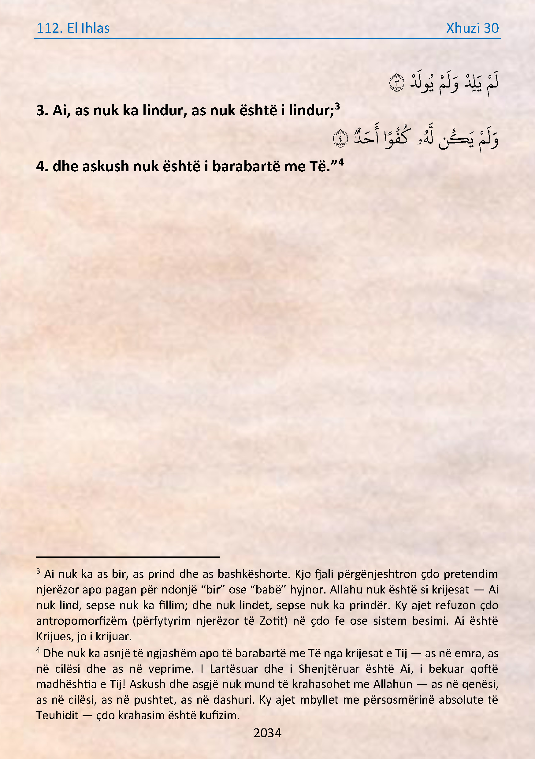 ‎112. SURJA “EL IHLAS”‎ – SINQERITETI / NJËSHMËRIA E PASTËR