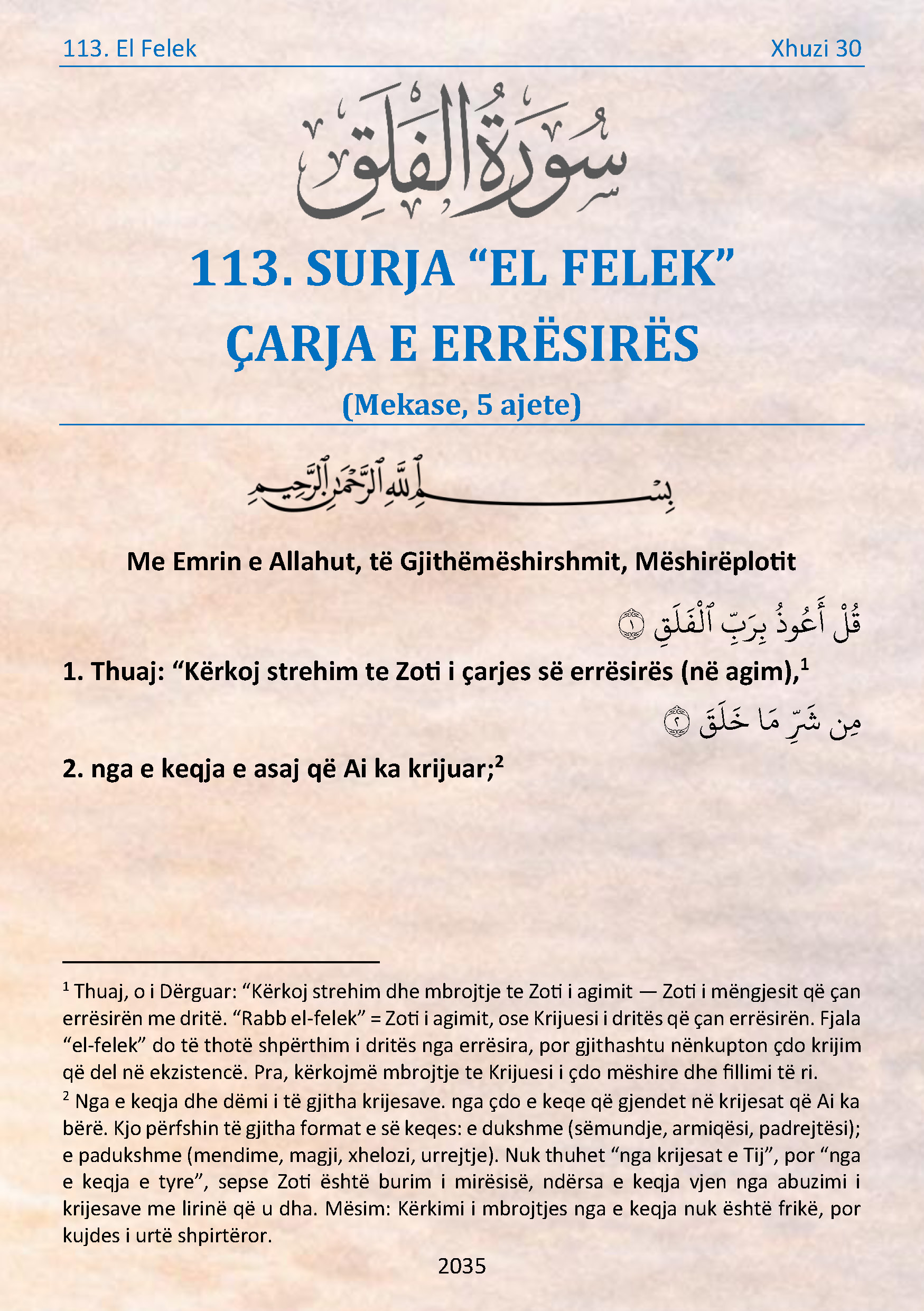 113. SURJA “EL FELEK” ÇARJA E ERRËSIRËS By rrugetepaqes|2026-01-25T16:48:54+04:00January 25th, 2026|Categories: Kurani Shqip|0 Comments View Larger Image Related Posts 114. Surja “En Nas” – Njerëzit 114. Surja “En Nas” – Njerëzit January 19th, 2026 50. SURJA “KAF” – SHKRONJA ‘KAF’ 50. SURJA “KAF” – SHKRONJA ‘KAF’ January 10th, 2026 28. SURJA “EL KASAS”- NGJARJA 28. SURJA “EL KASAS”- NGJARJA October 21st, 2025 94. SURJA “ESH SHARH” – HAPJA E KRAHARORIT 94. SURJA “ESH SHARH” – HAPJA E KRAHARORIT October 20th, 2025 27. SURJA “EN NEML”- MILINGONA 27. SURJA “EN NEML”- MILINGONA September 19th, 2025 26. SURJA “ESH SHUARA” – POETËT 26. SURJA “ESH SHUARA” – POETËT September 12th, 2025 25. SURJA “EL FURKAN” – KRITERI 25. SURJA “EL FURKAN” – KRITERI August 29th, 2025 24. SURJA “EN NUR” – DRITA 24. SURJA “EN NUR” – DRITA August 11th, 2025 23. SURJA “EL MU’MINUN” – BESIMTARËT 23. SURJA “EL MU’MINUN” – BESIMTARËT July 24th, 2025 22. SURJA “EL HAXH” – PELEGRINAZHI 22. SURJA “EL HAXH” – PELEGRINAZHI February 27th, 2025 21. SURJA “EL ENBIJA” – TË DËRGUARIT 21. SURJA “EL ENBIJA” – TË DËRGUARIT February 26th, 2025 20. SURJA “TA HA” – Shkronjat TA, HA 20. SURJA “TA HA” – Shkronjat TA, HA February 25th, 2025 19. SURJA “MERJEM” 19. SURJA “MERJEM” February 24th, 2025 18. SURJA “EL KEHF” – SHPELLA 18. SURJA “EL KEHF” – SHPELLA February 15th, 2025 17. SURJA “EL ISRA” – UDHËTIMI I NATËS 17. SURJA “EL ISRA” – UDHËTIMI I NATËS January 5th, 2025 16. SURJA EN NAHL – BLETA 16. SURJA EN NAHL – BLETA December 8th, 2024 15. SURJA EL HIXHR 15. SURJA EL HIXHR November 10th, 2024 14. SURJA IBRAHIM 14. SURJA IBRAHIM September 11th, 2024 13. SURJA ER RA’D – BUBULLIMA 13. SURJA ER RA’D – BUBULLIMA August 14th, 2024 12. SURJA “JUSUF” 12. SURJA “JUSUF” July 26th, 2024 11. SURJA “HUD” 11. SURJA “HUD” June 27th, 2024 10. SURJA “JUNUS” 10. SURJA “JUNUS” June 5th, 2024 9. SURJA “ET TEUBE” – PENDIMI 9. SURJA “ET TEUBE” – PENDIMI May 15th, 2024 8. SURJA “EL ENFAL” – PRETË E LUFTËS 8. SURJA “EL ENFAL” – PRETË E LUFTËS May 6th, 2024 7. SURJA “EL A’RAF” – LARTËSITË E MURIT NDARËS 7. SURJA “EL A’RAF” – LARTËSITË E MURIT NDARËS April 9th, 2024 6. SURJA “EL EN’AM” – BAGËTITË 6. SURJA “EL EN’AM” – BAGËTITË June 11th, 2023 5. SURJA “EL MAIDE” – TRYEZA 5. SURJA “EL MAIDE” – TRYEZA May 21st, 2023 4. SURJA “EN NISA” – GRATË 4. SURJA “EN NISA” – GRATË April 26th, 2023 3. SURJA “AL IMRAN” – FAMILJA AL IMRAN 3. SURJA “AL IMRAN” – FAMILJA AL IMRAN March 12th, 2023 2. SURJA “EL BEKARE” – LOPA 2. SURJA “EL BEKARE” – LOPA January 18th, 2023
