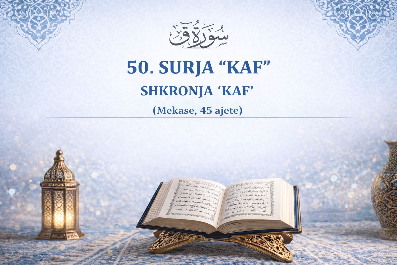 50. SURJA “KAF” – SHKRONJA ‘KAF’ By rrugetepaqes|2026-01-10T19:19:46+04:00January 10th, 2026|Categories: Kurani Shqip|Comments Off on 50. SURJA “KAF” – SHKRONJA ‘KAF’ View Larger Image Related Posts 28. SURJA “EL KASAS”- NGJARJA 28. SURJA “EL KASAS”- NGJARJA October 21st, 2025 94. SURJA “ESH SHARH” – HAPJA E KRAHARORIT 94. SURJA “ESH SHARH” – HAPJA E KRAHARORIT October 20th, 2025 27. SURJA “EN NEML”- MILINGONA 27. SURJA “EN NEML”- MILINGONA September 19th, 2025 26. SURJA “ESH SHUARA” – POETËT 26. SURJA “ESH SHUARA” – POETËT September 12th, 2025 25. SURJA “EL FURKAN” – KRITERI 25. SURJA “EL FURKAN” – KRITERI August 29th, 2025 24. SURJA “EN NUR” – DRITA 24. SURJA “EN NUR” – DRITA August 11th, 2025 23. SURJA “EL MU’MINUN” – BESIMTARËT 23. SURJA “EL MU’MINUN” – BESIMTARËT July 24th, 2025 22. SURJA “EL HAXH” – PELEGRINAZHI 22. SURJA “EL HAXH” – PELEGRINAZHI February 27th, 2025 21. SURJA “EL ENBIJA” – TË DËRGUARIT 21. SURJA “EL ENBIJA” – TË DËRGUARIT February 26th, 2025 20. SURJA “TA HA” – Shkronjat TA, HA 20. SURJA “TA HA” – Shkronjat TA, HA February 25th, 2025 19. SURJA “MERJEM” 19. SURJA “MERJEM” February 24th, 2025 18. SURJA “EL KEHF” – SHPELLA 18. SURJA “EL KEHF” – SHPELLA February 15th, 2025 17. SURJA “EL ISRA” – UDHËTIMI I NATËS 17. SURJA “EL ISRA” – UDHËTIMI I NATËS January 5th, 2025 16. SURJA EN NAHL – BLETA 16. SURJA EN NAHL – BLETA December 8th, 2024 15. SURJA EL HIXHR 15. SURJA EL HIXHR November 10th, 2024 14. SURJA IBRAHIM 14. SURJA IBRAHIM September 11th, 2024 13. SURJA ER RA’D – BUBULLIMA 13. SURJA ER RA’D – BUBULLIMA August 14th, 2024 12. SURJA “JUSUF” 12. SURJA “JUSUF” July 26th, 2024 11. SURJA “HUD” 11. SURJA “HUD” June 27th, 2024 10. SURJA “JUNUS” 10. SURJA “JUNUS” June 5th, 2024 9. SURJA “ET TEUBE” – PENDIMI 9. SURJA “ET TEUBE” – PENDIMI May 15th, 2024 8. SURJA “EL ENFAL” – PRETË E LUFTËS 8. SURJA “EL ENFAL” – PRETË E LUFTËS May 6th, 2024 7. SURJA “EL A’RAF” – LARTËSITË E MURIT NDARËS 7. SURJA “EL A’RAF” – LARTËSITË E MURIT NDARËS April 9th, 2024 6. SURJA “EL EN’AM” – BAGËTITË 6. SURJA “EL EN’AM” – BAGËTITË June 11th, 2023 5. SURJA “EL MAIDE” – TRYEZA 5. SURJA “EL MAIDE” – TRYEZA May 21st, 2023 4. SURJA “EN NISA” – GRATË 4. SURJA “EN NISA” – GRATË April 26th, 2023 3. SURJA “AL IMRAN” – FAMILJA AL IMRAN 3. SURJA “AL IMRAN” – FAMILJA AL IMRAN March 12th, 2023 2. SURJA “EL BEKARE” – LOPA 2. SURJA “EL BEKARE” – LOPA January 18th, 2023 1. SURJA “EL FATIHA” – HAPJA 1. SURJA “EL FATIHA” – HAPJA January 18th, 2023